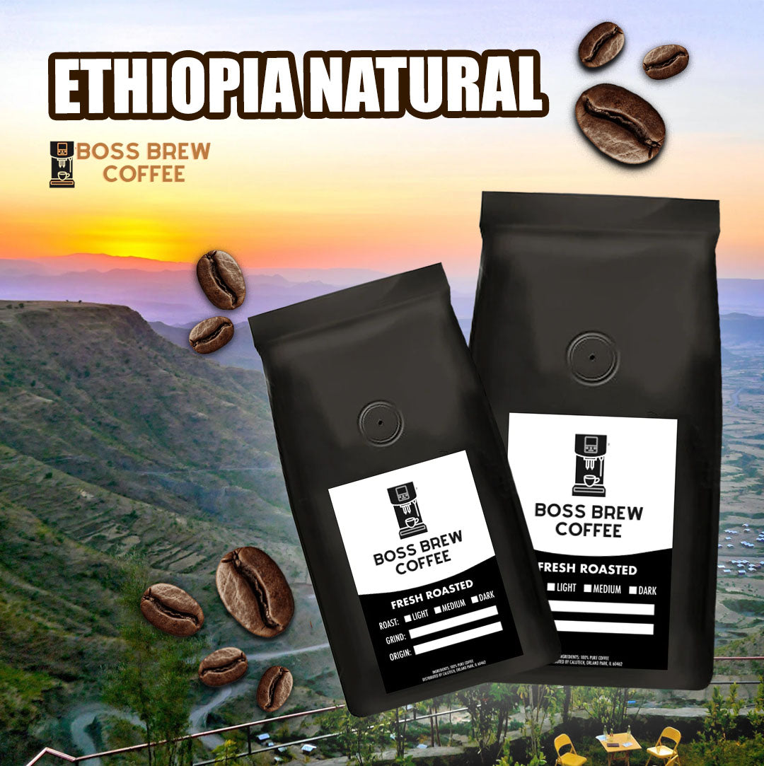 Boss Brew Coffee's Farm Direct Ethiopia Natural roasted beans are carefully selected and hand-picked. They have a uniquely nutty flavor possessing a flawless taste.